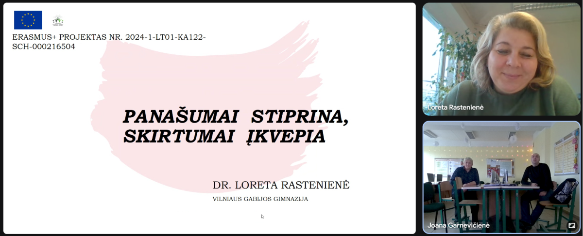 2025 m. gruodžio 3 d. vyko gamtos mokslų mokytojų metodinės grupės susirinkimas, kuriame Vilniaus Gabijos gimnazijos fizikos mokytoja metodininkė Loreta Rastenienė skaitė pranešimą apie Erasmus+ programos galimybes mokytojams, projekte „Panašumai – stiprina, skirtumai – įkvepia“ įvykdytas veiklas, dalinosi pamokų vedimo užsienio mokyklose patirtimi, pristatė projekto metu sukurtą refleksijos formą.