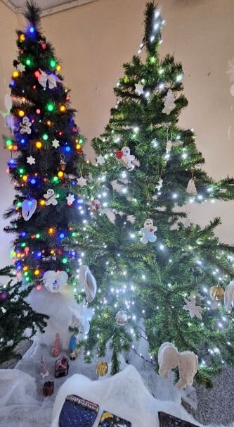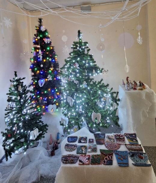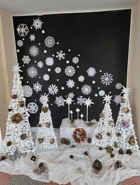 Kaip ir kasmet lapkričio pabaigoje – gruodžio pradžioje gimnazija siūdinasi sau baltą, spindintį, daug rankų darbo ir šilumos reikalaujantį kalėdinį apsiaustą. Lapkričio 28 d. visa mokyklos bendruomenė karpė, klijavo, puošė eglutes, kabino girliandas ir sukūrė jaukų kalėdinį stebuklą. Šiais metais buvo sutarta prisiminti tradicinius, visiems labai gerai pažįstamus kalėdinius akcentus ir iš jų sukurti dekoracijas. Gimnazijos erdves papuošė eglučių kompozicijos, kurių puošyboje vyrauja vaikų pagaminti rankų darbo žaisliukai: nertos snaigės, kaspinėliais puošti kankorėžiai, siūti angelėliai, iš molio ir modelino nulipdyti meduoliukai, žaisliukai iš samanų, šakelių ir akmenėlių. Ant langų ir lubų sutūpė popierinių snaigučių kompozicijos. Šviesos ir jaukumo pridėjo mažytės spindinčios lemputės ir keramikos būrelio kūrybinių darbų paroda. Štai toks jaukus ir šiltas šių metų Vidiškių gimnazijos kalėdinis apsiaustas.
