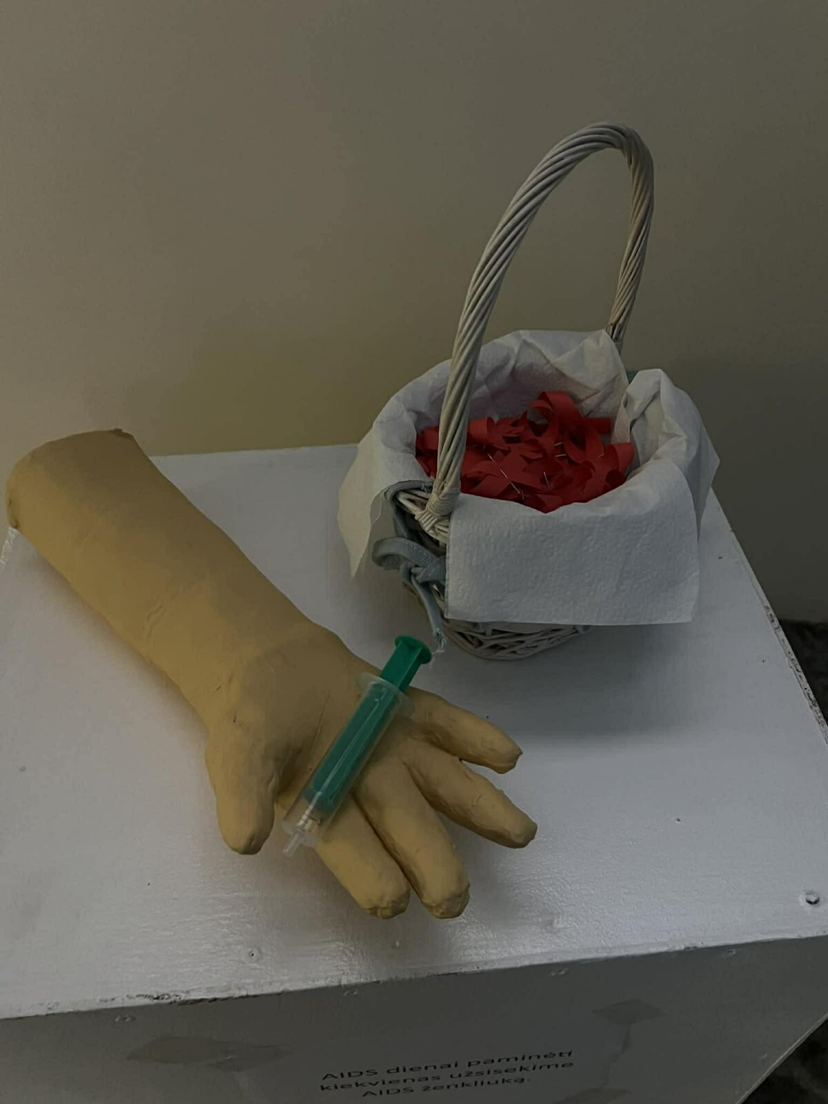 Minėdami AIDS dieną norėjome ne tik prisiminti šios ligos temą, bet ir paskatinti kiekvieną susimąstyti apie atsakomybę, supratingumą ir tarpusavio palaikymą. Sukurta ranka su švirkštu – tai simbolis, primenantis, kaip svarbu saugoti save ir kitus bei rinktis sąmoningus sprendimus. Ji vaizduoja ne baimę, o kvietimą kalbėti atvirai, nebijoti žinoti ir rūpintis savo bei artimųjų sveikata. Iš popieriaus pagaminti ženkliukai tapo solidarumo ir vienybės ženklu – nedideliu, bet labai prasmingu priminimu, kad kiekvienas galime prisidėti prie stigmos mažinimo, palaikymo ir supratimo sklaidos. Kartu siunčiame žinutę: žinios saugo, atjauta jungia, o rūpestis keičia pasaulį.