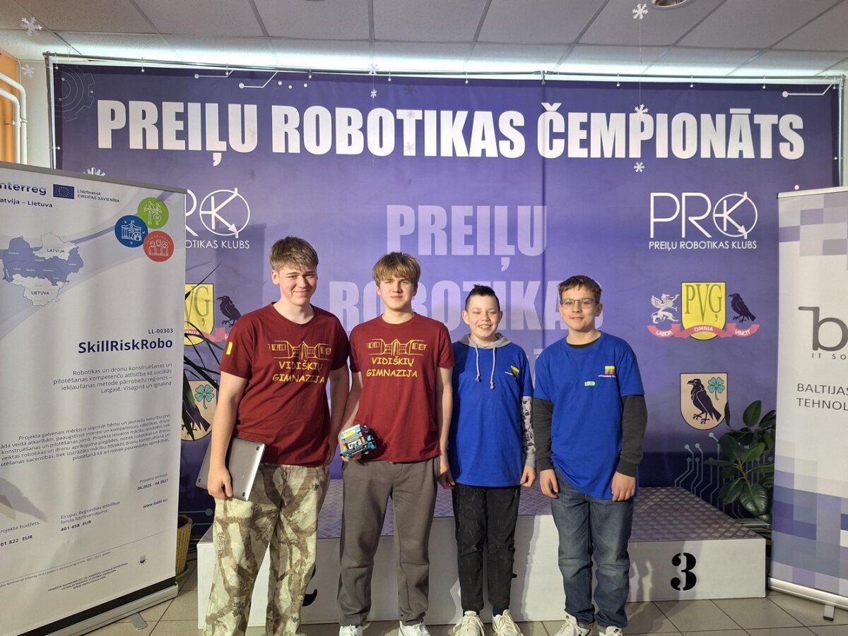 2026 m. sausio 31 d. mūsų gimnazijos mokiniai – Aistis Raketis (6 kl.), Andrius Bartaška (6 kl.), Armanas Petronis (8 kl.) ir Aidas Macijauskas (II kl.) –dalyvavo tarptautiniame „Preiļi robotikos čempionate 2026“ (angl. Preili Robotics Championships 2026), vykusiame Latvijoje. Šis renginys – viena iš veiklų, įgyvendinamų tarptautinio projekto „SkillRiskRobo“ metu.