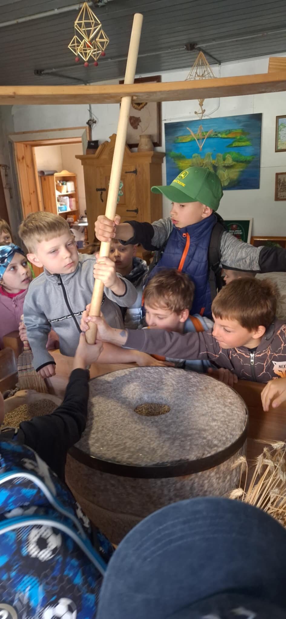 Paskutinę balandžio dieną antrokai lankėsi Daugėliškio krašto bendruomenės namuose. Šeimininkė Indrė Gruodienė visus svetingai priėmė, aprodė muziejų, vaizdžiai papasakojo kaip duonutė atkeliauja ant mūsų stalo. Vaikai mokėsi malti miltus, klausė istorijas, laikėsi papročių, formavo savo miežinio duonos ragaišio kepalėlį, jį puošė, barstė pagardais. Kol duona kepė visi keliavo į socialines dirbtuves. Ten susitiko su šauniomis dirbtuvių darbuotojomis ir dalyviais, visi kartu žaidė žaidimus, dalyvavo šaunioje „Fantazijos binomo“ edukacijoje. Pasitelkę fantaziją kūrė iš priešingų, visiškai realybėje nesusijusių dalykų, veikėjus, vaidino pasaką. Sugrįžę į bendruomenės namus jau rado iškepusią, iš toli kvepiančią duoną. Visi vaišinosi arbata, skaniu pyragu, dainavo kartu su Indre, linksminosi, klausėsi klasiokės Kamilės atliekamo muzikinio kūrinio. Laikas prabėgo greitai. Rankutėse laikydami savo ragaišio kepalėlį vaikai sugrįžo į mokyklą. Džiaugiamės, kad diena praėjo smagiai ir naudingai.