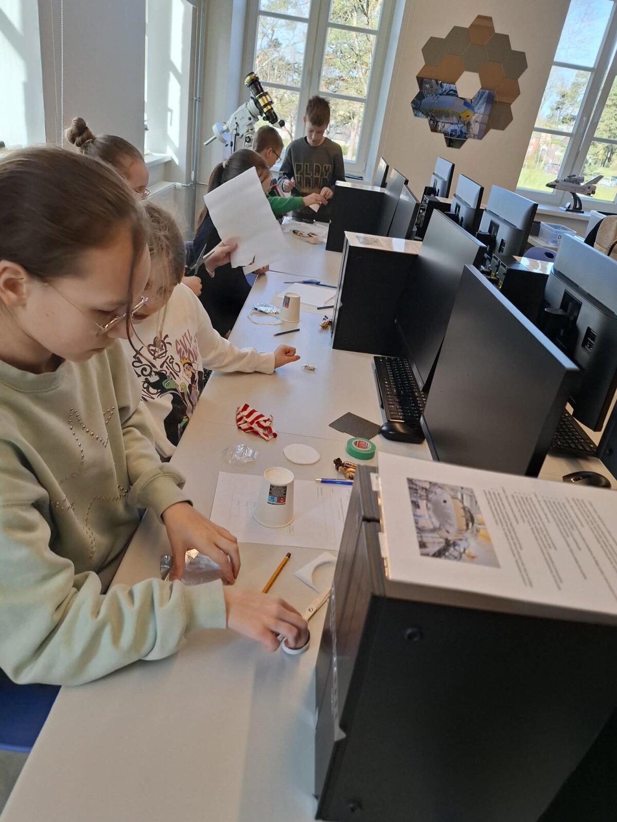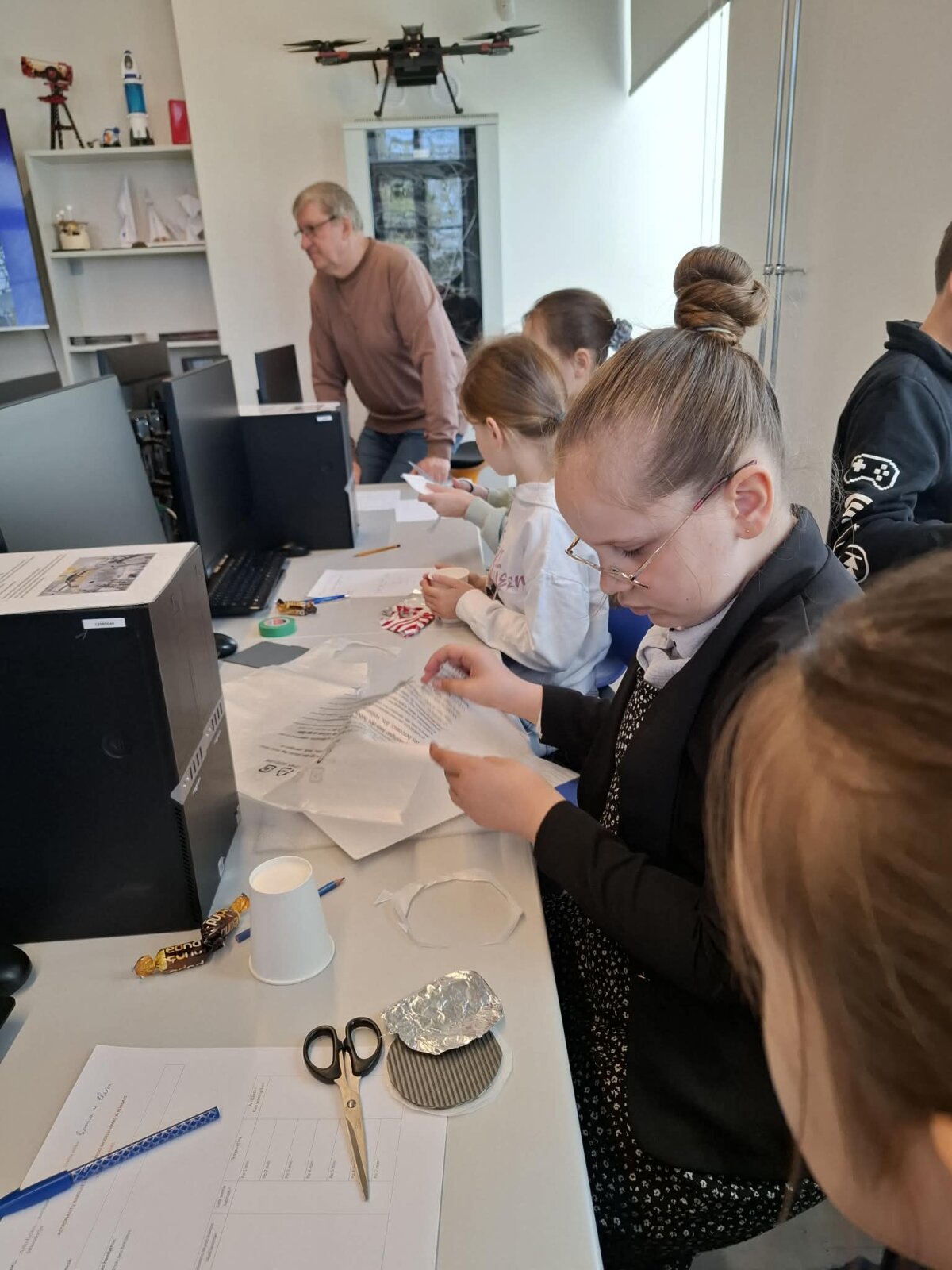 Užsiėmimo „Astronautų kapsulės šilumos skydo modeliavimas ir kūrimas“ metu mokiniai gilinosi į kosminių technologijų pasaulį: aiškinosi, su kokiais iššūkiais susiduria erdvėlaiviai, grįždami į Žemės atmosferą, kokios medžiagos gali atlaikyti itin aukštas temperatūras. Praktinėje dalyje jie patys kūrė šilumos skydo modelius, testavo jų efektyvumą ir analizavo rezultatus.