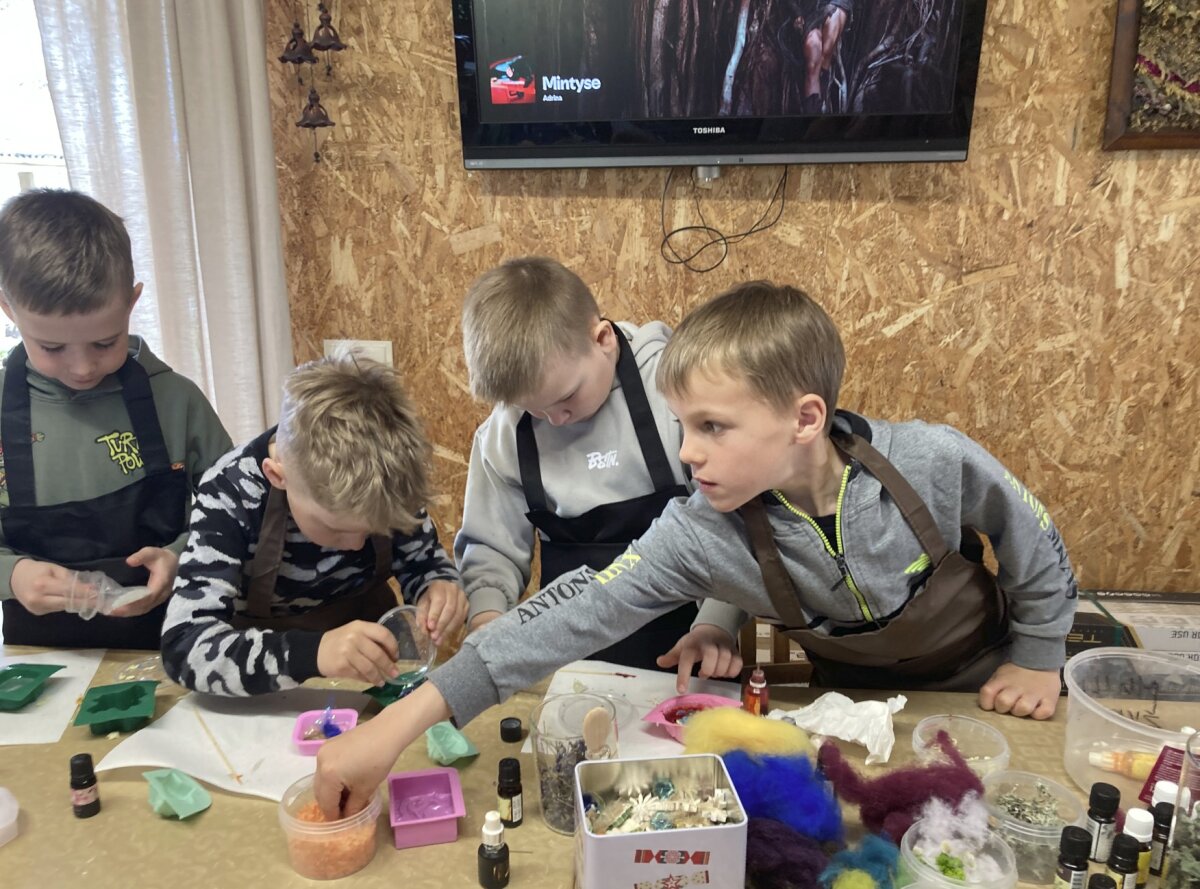 Gamybos metu vaikai rinkosi įvairius priedus: dėjo kvapnias žoleles, spalvingus druskos kristalus bei rinkosi patinkančius aromatus. Kiekvienas turėjo galimybę sukurti savitą ir unikalų muiliuką.