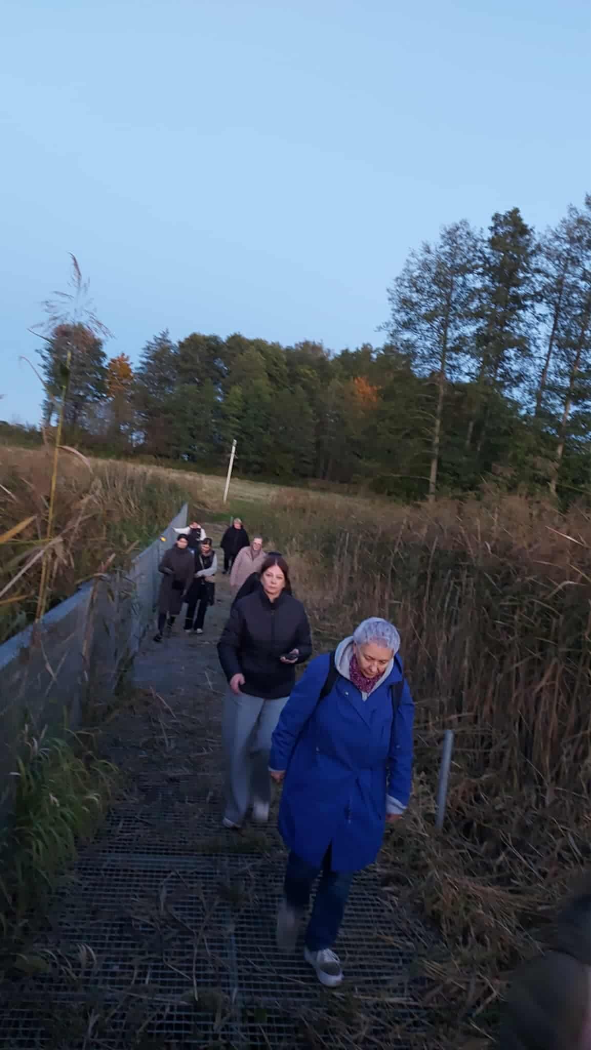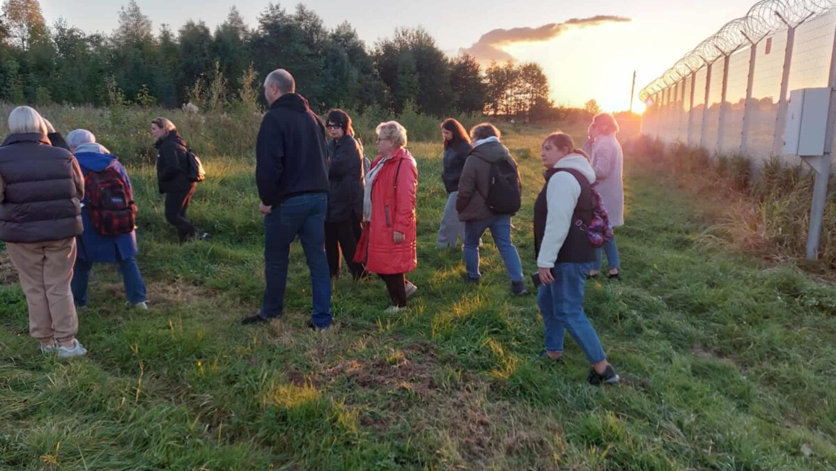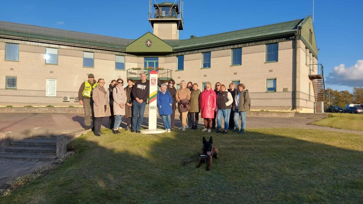 Pasienio užkardoje mus pasitiko jos vadas Raimondas Bučelis ir specialistas, mūsų gimnazijos Jaunojo pasieniečio būrelio vadovas Andrejus Matvėjevas. Įdomu buvo žiūrėti filmą ir klausytis pasakojimo apie pasieniečių darbą, jų kasdienybę, tarnyboje kylančius iššūkius, dar daugiau susidomėjimo sukėlė pasieniečių naudojama įranga: pistoletai, tazeris, šautuvai ir kulkosvaidžiai, dronų naikinimo, dieninio ir naktinio matymo įrenginiai, termovizoriai, aprangos ir apsaugos elementai, džipai, keturračiai, sniego rogės ir t. t. Nepasikuklinome – apžiūrėjome ir pasieniečių darbo bei poilsio patalpas. Aprūpinimas ir sąlygos geros, todėl abiturientai turėtų dažniau rinktis pasieniečio profesiją (užkardoje trūksta apie 30 pareigūnų). Daug gerų emocijų sukėlė šuns Cezario pasirodymas, kurį dresuoja pasienietis Auridijus Paukštė. Gėrėjomės Birvėtos tvenkiniuose plaukiojančiomis gulbėmis ir nuostabiais vaizdais, atsiveriančiais nuo Galalaukių pasieniečių apžvalgos bokšto. Džiaugėmės reta galimybe nuvykti į jau dabar uždarytą Vidžių muitinės punktą, nustebino moderni jo įranga, skirta automobilių ir žmonių patikrai. „Pačiupinėjome“ koncertiną, nusidriekusią Lietuvos pasieniu net iki jūros. Kai pasiekėme naująjį pantoninį tiltą, nutiestą tiesiai per pelkes, jau gerokai sutemo, bet sutemas sklaidė virš pelkių kylantis rūkas, danguje šviečianti mėnulio pilnatis...