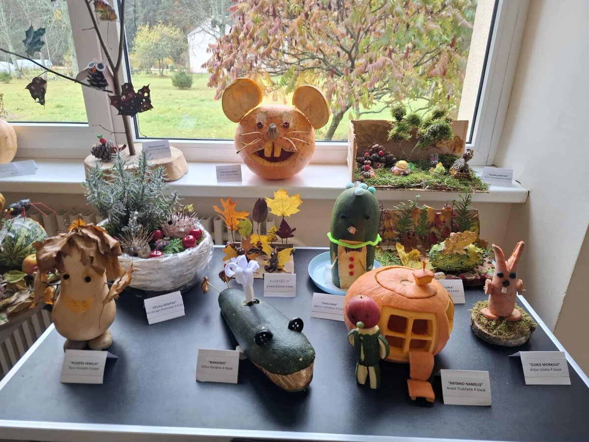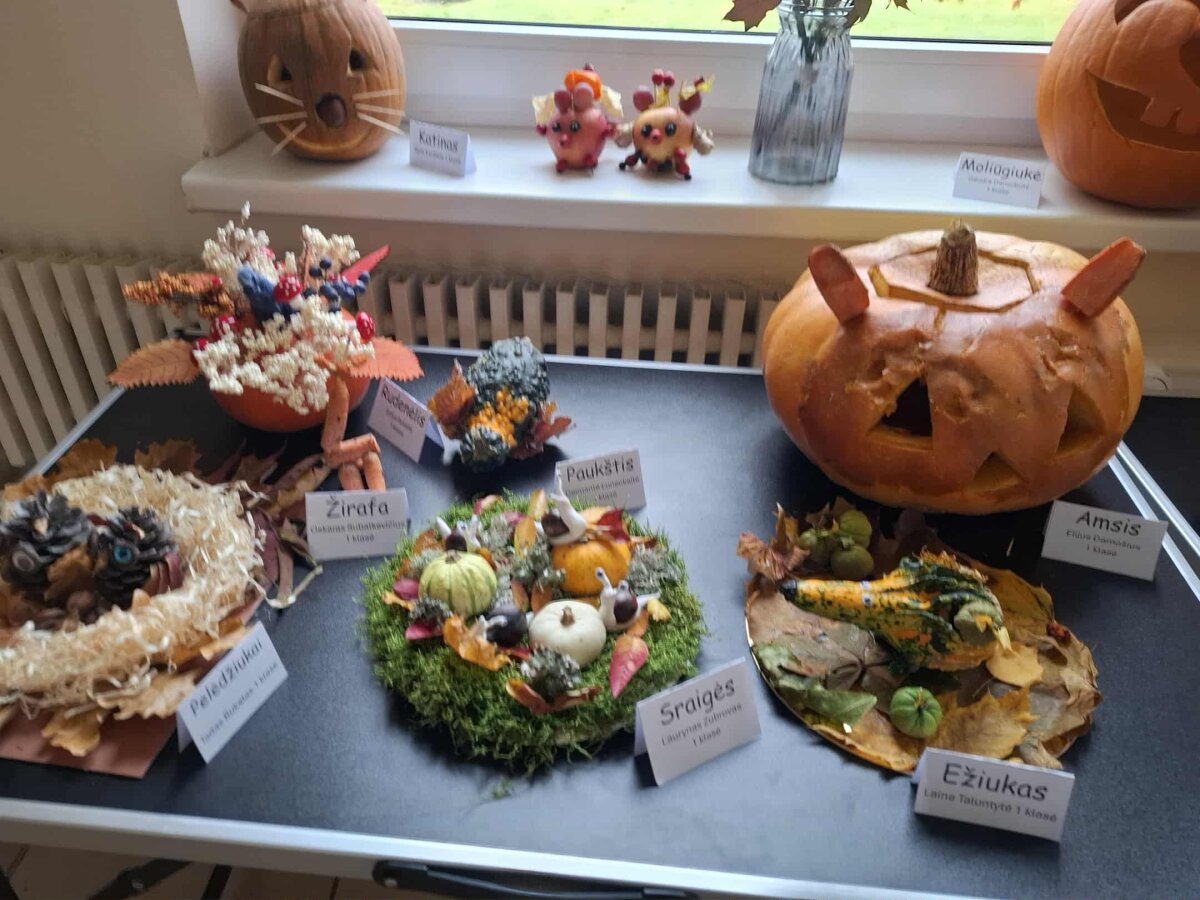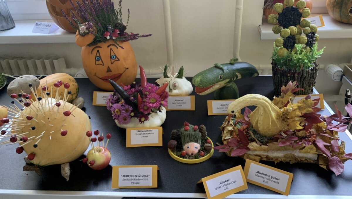 Šiemet, kaip ir kiekvieną rudenį, gimnazijoje vyksta 1–4 klasių darbelių iš rudens gėrybių paroda „Rudenėlio taku“. Parodos tikslas – bendradarbiaujant su šeimos nariais skatinti mokinių kūrybiškumą. Vaikai ir jų tėveliai, darydami kompozicijas iš vaisių, daržovių, medžių lapų, džiovintų gėlių bei kitų rudens gėrybių, visus nustebino savo išradingumu, kūrybiškumu, meniškumu. Kiekviena daržovė pavirto netikėtu, nuostabiu darbeliu: paukščiu, ežiuku, sraige, gulbe, rykliu, laivu ir netgi ragana. Parodoje eksponuojami ir „Jaunųjų gamtos bičiulių“ būrelio, vadovaujamo mokytojos metodininkės Elenos Abeciūnienės, mokinių darbai.