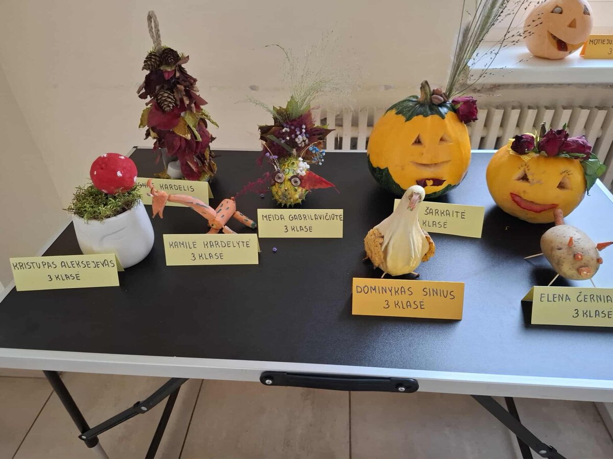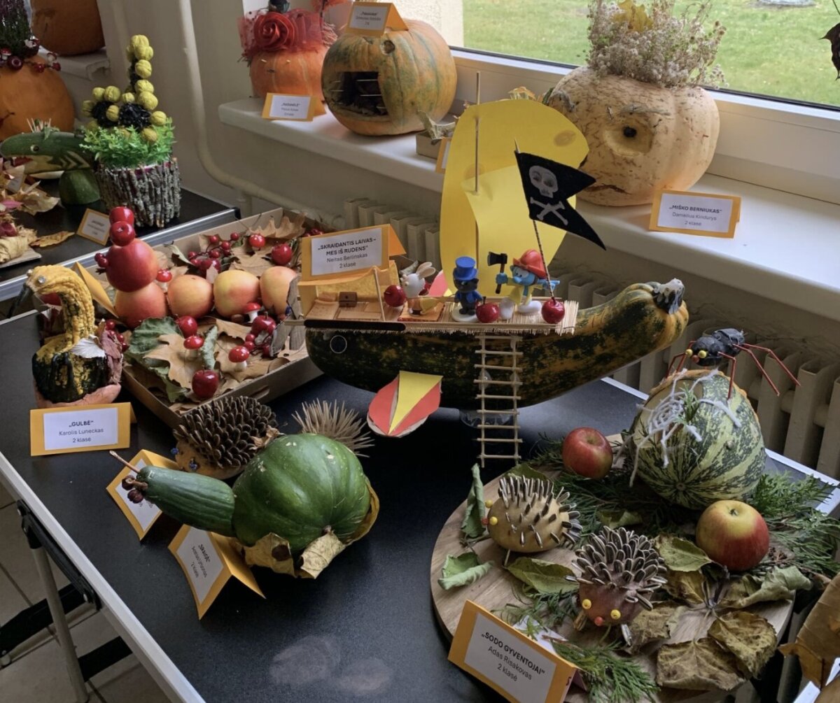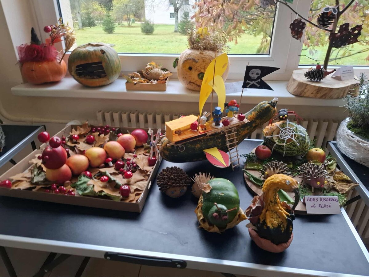 Šiemet, kaip ir kiekvieną rudenį, gimnazijoje vyksta 1–4 klasių darbelių iš rudens gėrybių paroda „Rudenėlio taku“. Parodos tikslas – bendradarbiaujant su šeimos nariais skatinti mokinių kūrybiškumą. Vaikai ir jų tėveliai, darydami kompozicijas iš vaisių, daržovių, medžių lapų, džiovintų gėlių bei kitų rudens gėrybių, visus nustebino savo išradingumu, kūrybiškumu, meniškumu. Kiekviena daržovė pavirto netikėtu, nuostabiu darbeliu: paukščiu, ežiuku, sraige, gulbe, rykliu, laivu ir netgi ragana. Parodoje eksponuojami ir „Jaunųjų gamtos bičiulių“ būrelio, vadovaujamo mokytojos metodininkės Elenos Abeciūnienės, mokinių darbai.