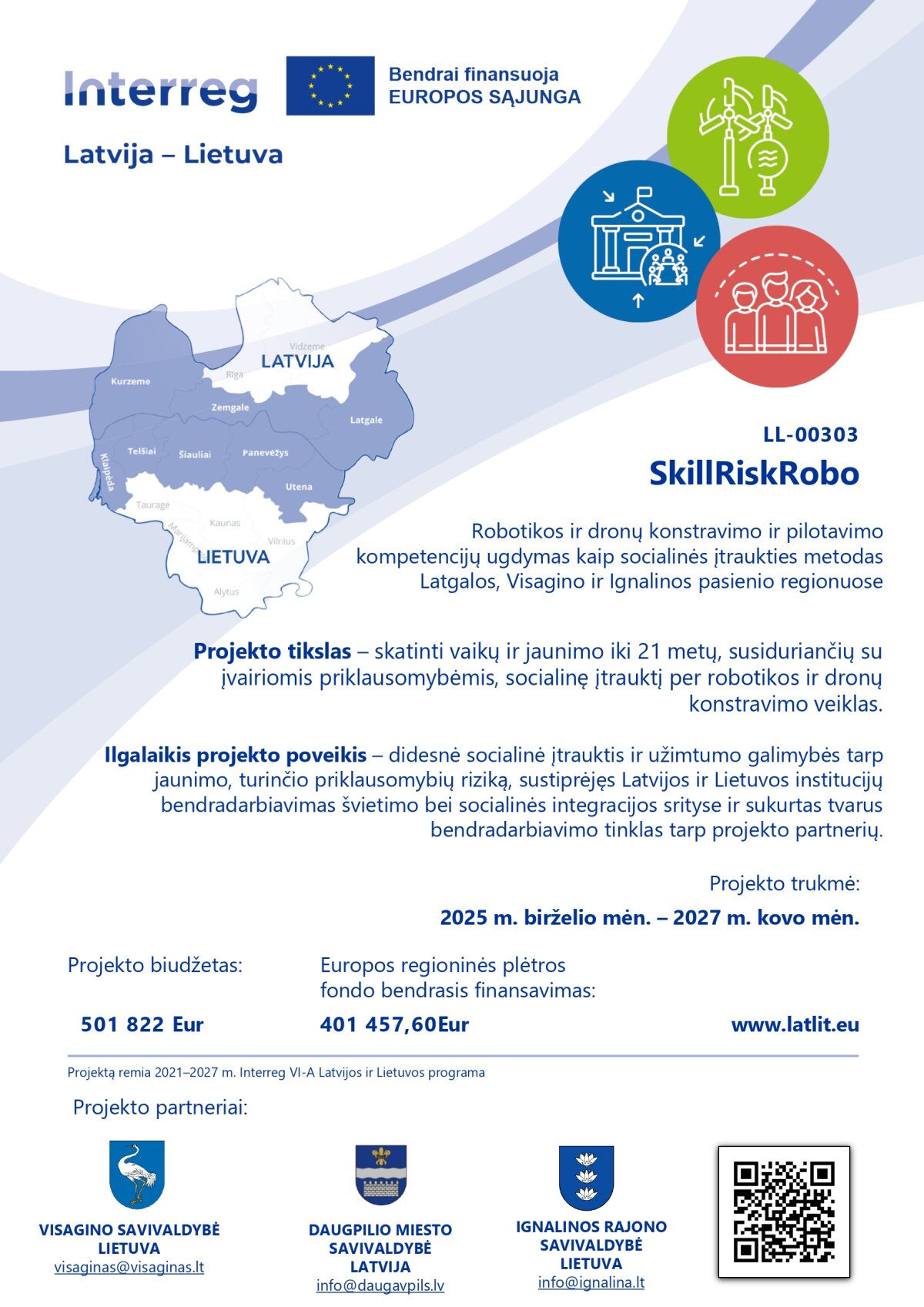 Ignalinos r. Vidiškių gimnazija pradeda dalyvauti tarptautiniame projekte „SkillRiskRobo LL-00303 Development of robotics and drone construction and piloting competencies as method of social inclusion in cross border regions of Latgale, Visaginas and Ignalina“. Šis projektas yra skirtas technologinių kompetencijų stiprinimui, pasitelkiant robotikos ir dronų konstravimo veiklas, ir yra įgyvendinamas kaip bendras Lietuvos ir Latvijos švietimo įstaigų bendradarbiavimo rezultatas.