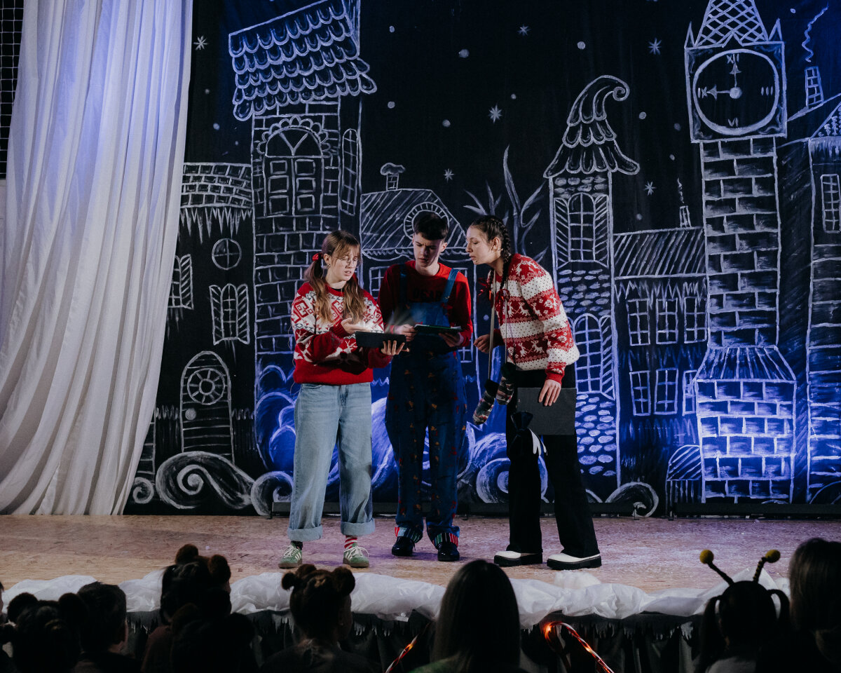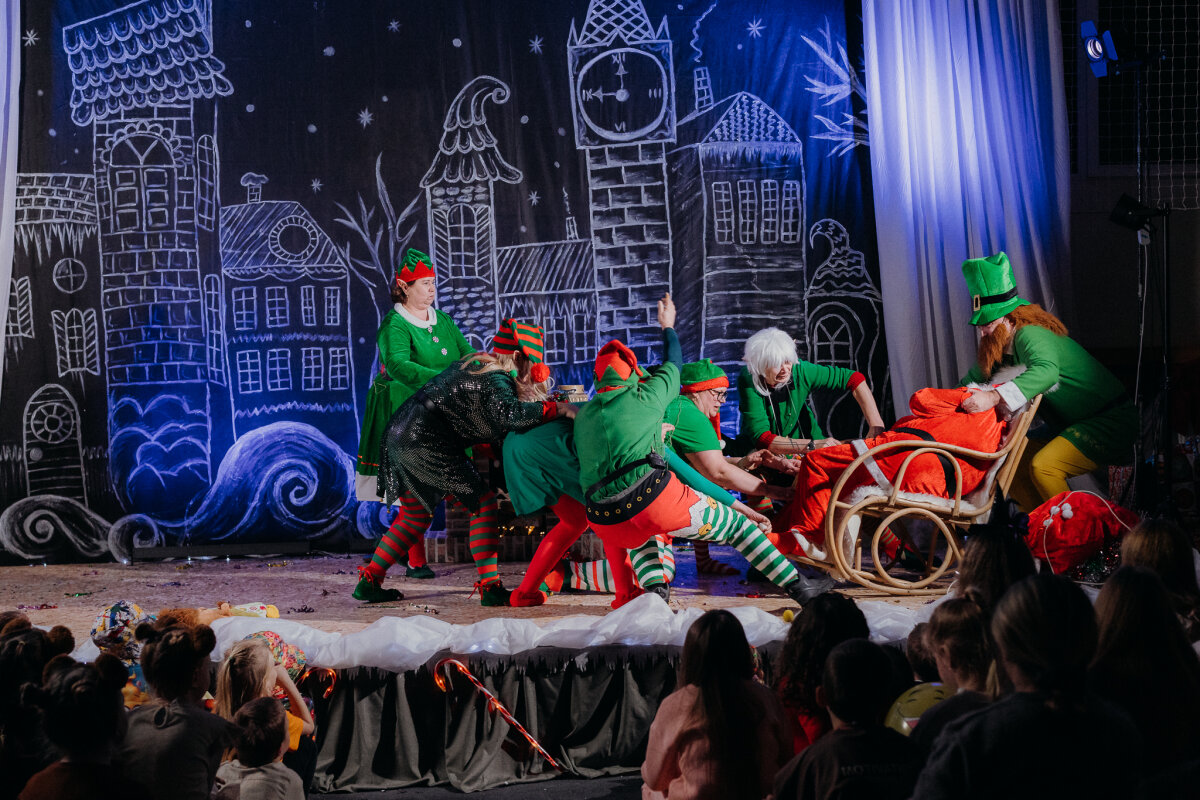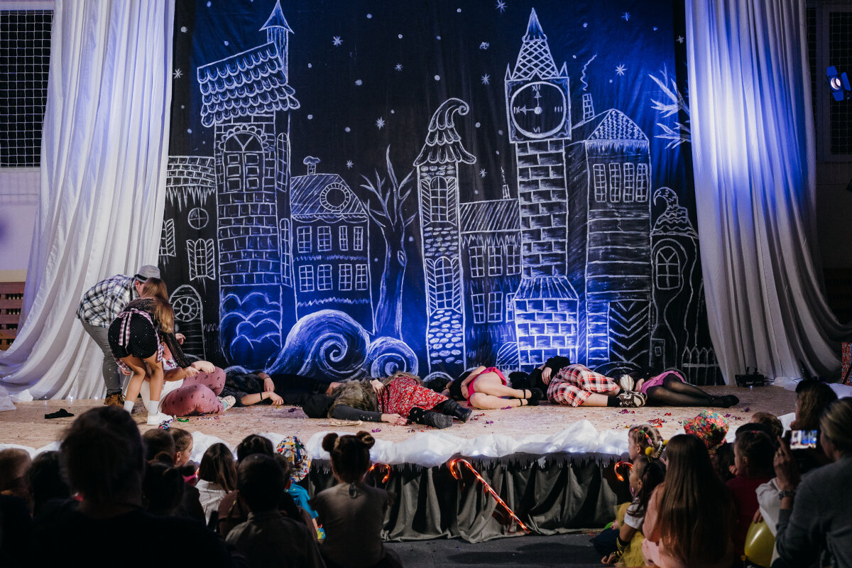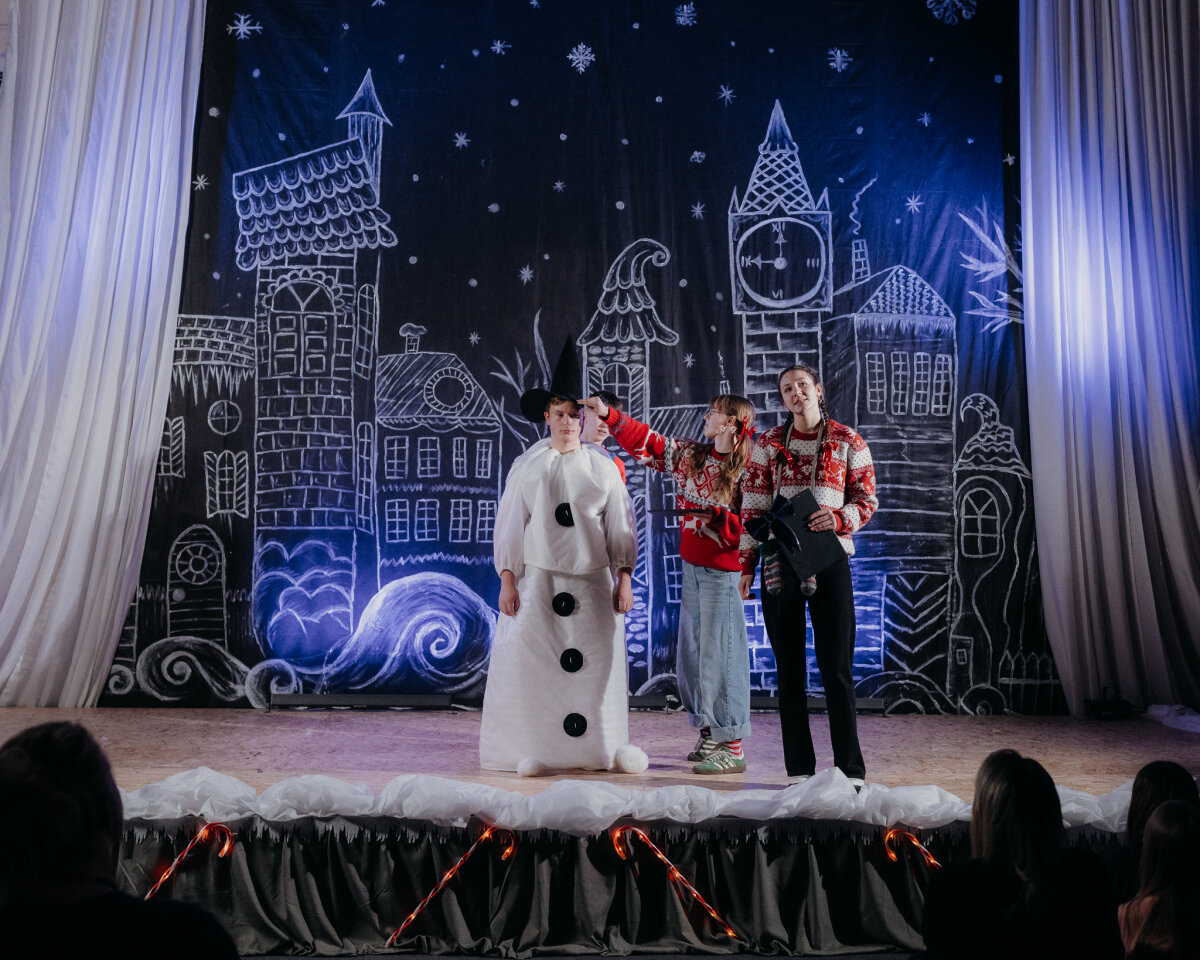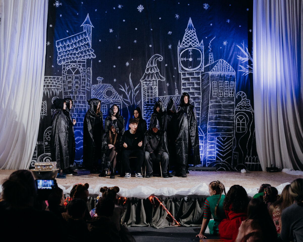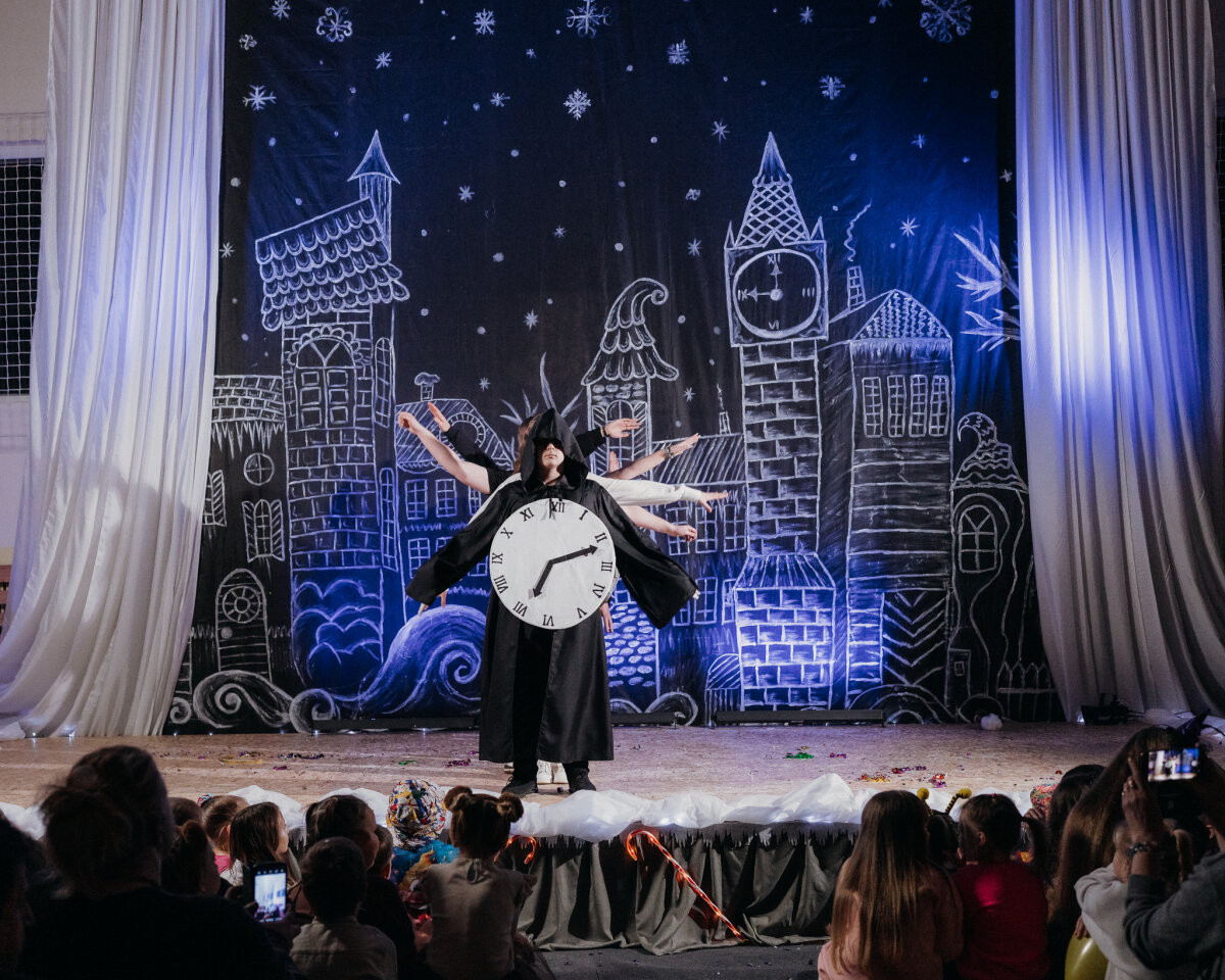 Scenoje gimė istorija apie tris draugus – Liucę, Dorotę ir Kajų, kurie paskutinėmis minutėmis iki Kalėdų leidžiasi ieškoti dingusios Kalėdų dvasios. Jų kelionė vedė per paslaptingas erdves, kuriose kiekviena klasė atskleidė vis kitą stebuklą. Kambarys virto mišku, šešėliai – baimėmis, o baimės – drąsa. Šviesa, muzika ir judesys scenoje kūrė ypatingą įtampą, leidusią žiūrovams ne tik stebėti, bet ir jausti.
