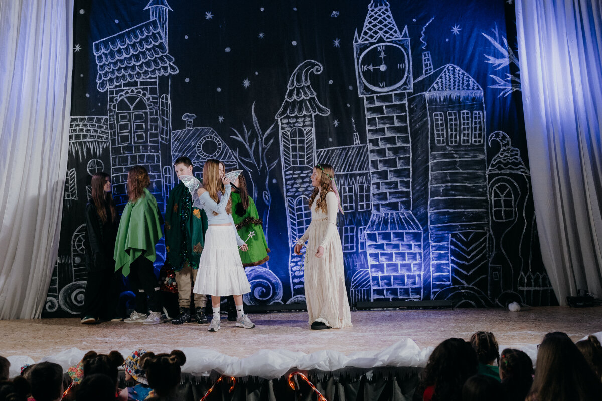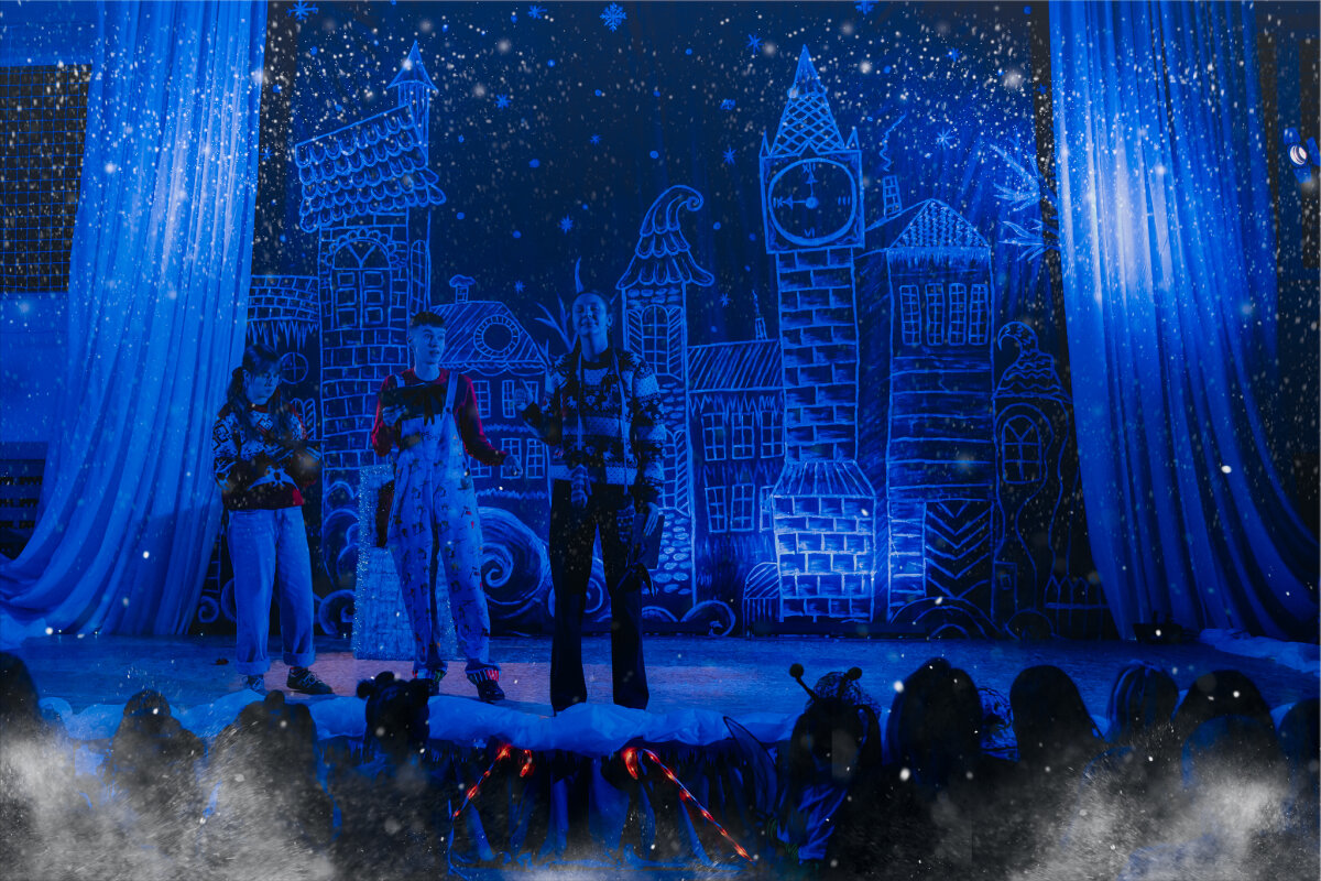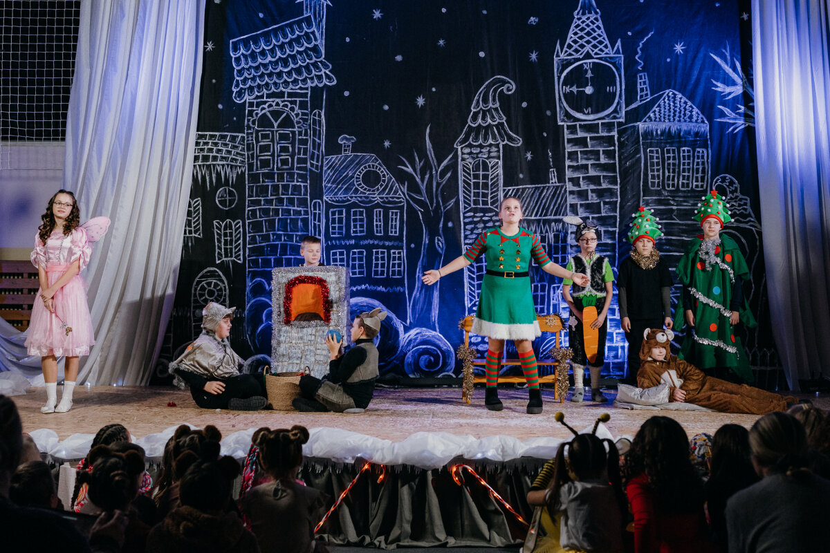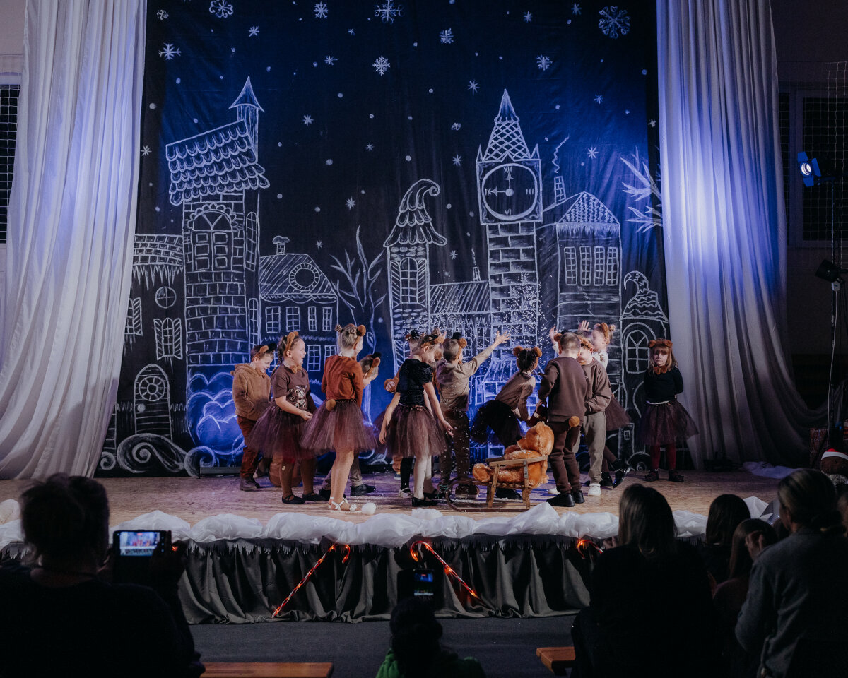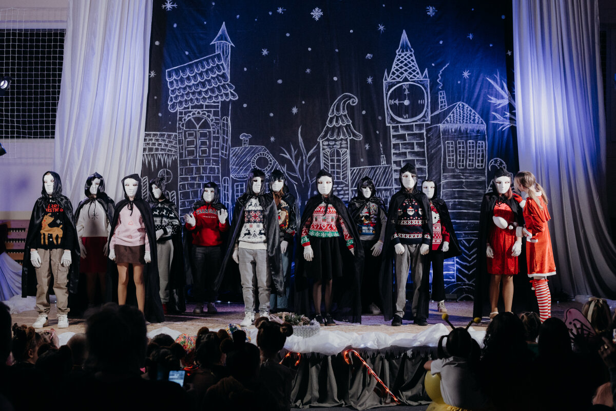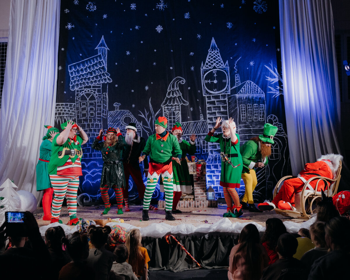 Scenoje gimė istorija apie tris draugus – Liucę, Dorotę ir Kajų, kurie paskutinėmis minutėmis iki Kalėdų leidžiasi ieškoti dingusios Kalėdų dvasios. Jų kelionė vedė per paslaptingas erdves, kuriose kiekviena klasė atskleidė vis kitą stebuklą. Kambarys virto mišku, šešėliai – baimėmis, o baimės – drąsa. Šviesa, muzika ir judesys scenoje kūrė ypatingą įtampą, leidusią žiūrovams ne tik stebėti, bet ir jausti.