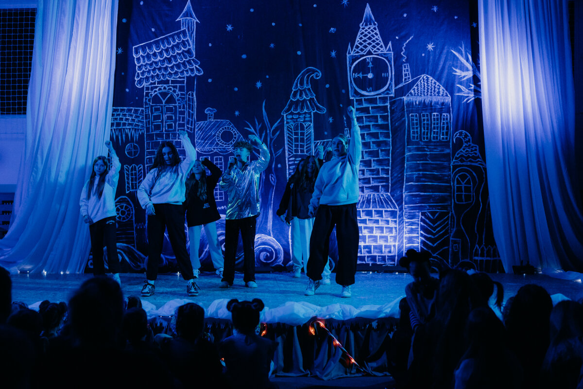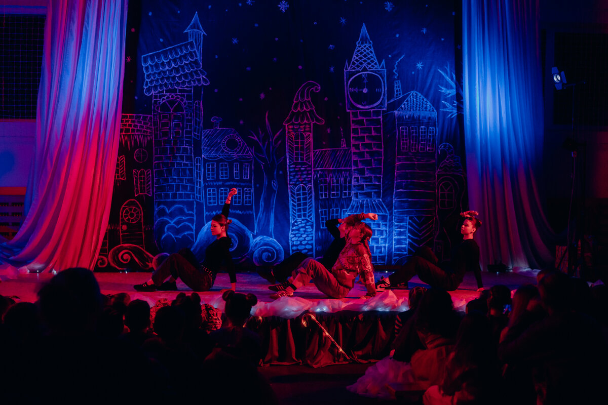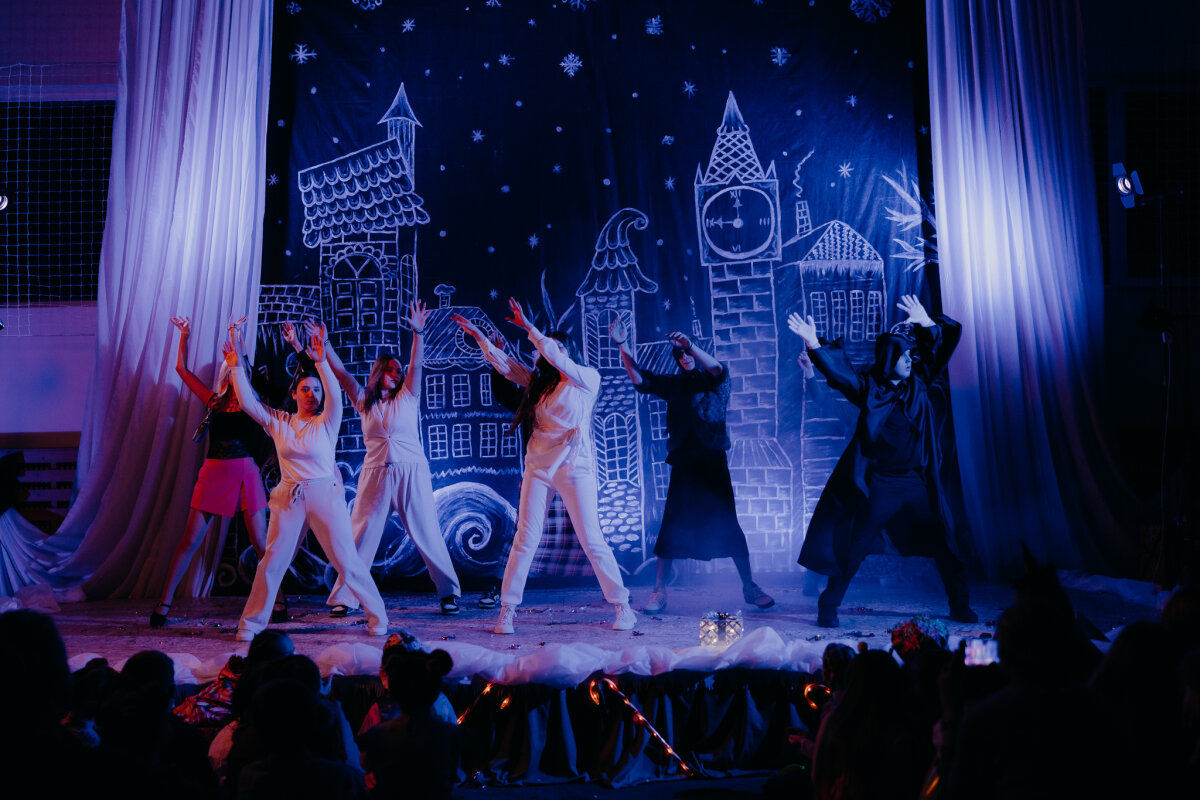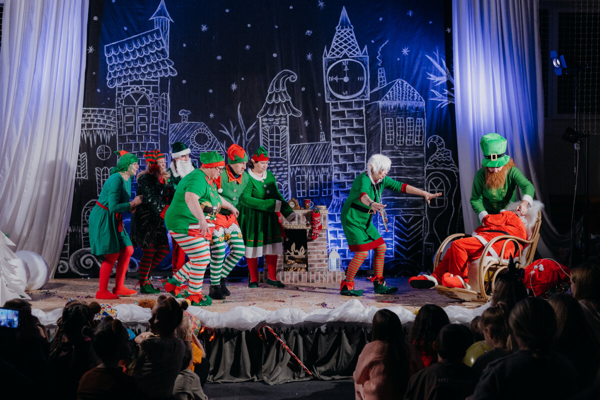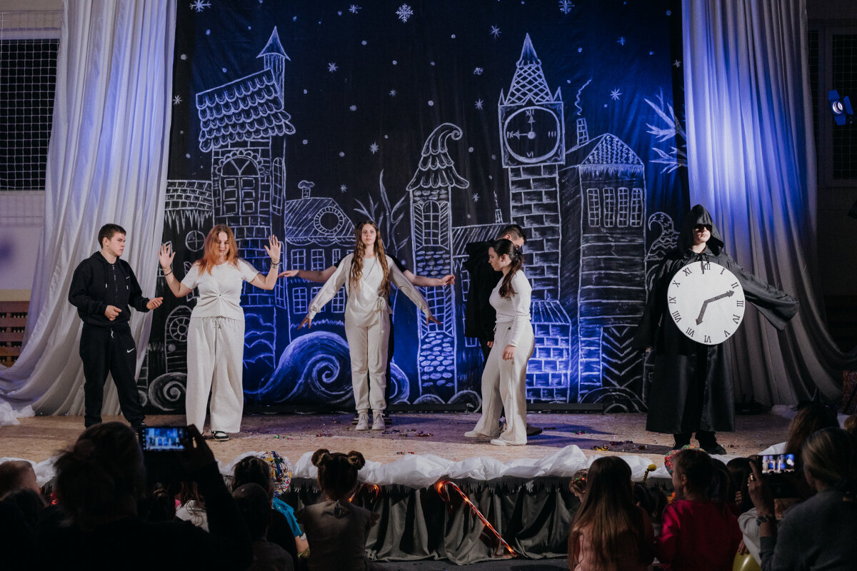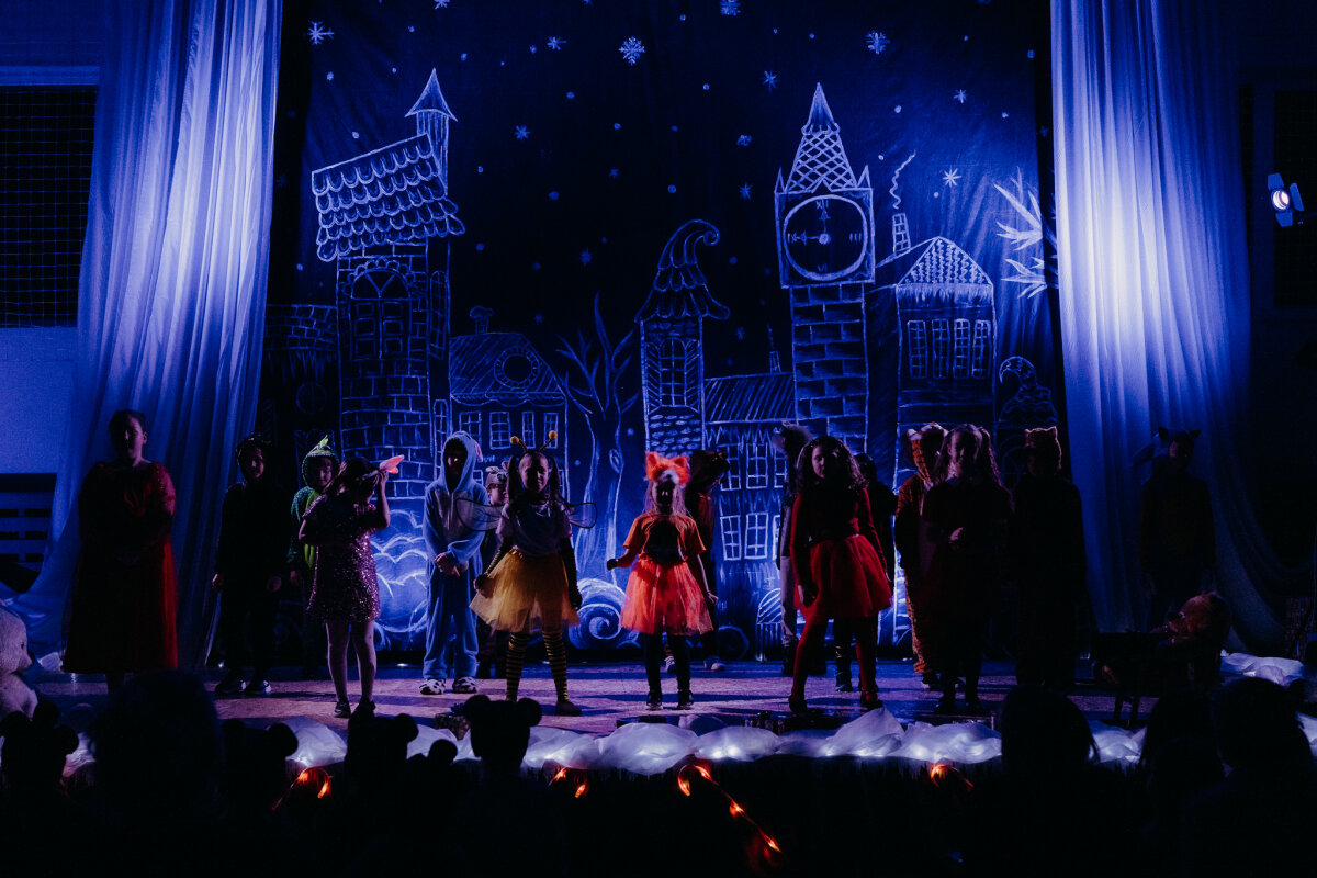Scenoje gimė istorija apie tris draugus – Liucę, Dorotę ir Kajų, kurie paskutinėmis minutėmis iki Kalėdų leidžiasi ieškoti dingusios Kalėdų dvasios. Jų kelionė vedė per paslaptingas erdves, kuriose kiekviena klasė atskleidė vis kitą stebuklą. Kambarys virto mišku, šešėliai – baimėmis, o baimės – drąsa. Šviesa, muzika ir judesys scenoje kūrė ypatingą įtampą, leidusią žiūrovams ne tik stebėti, bet ir jausti.