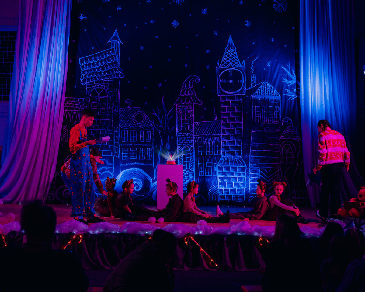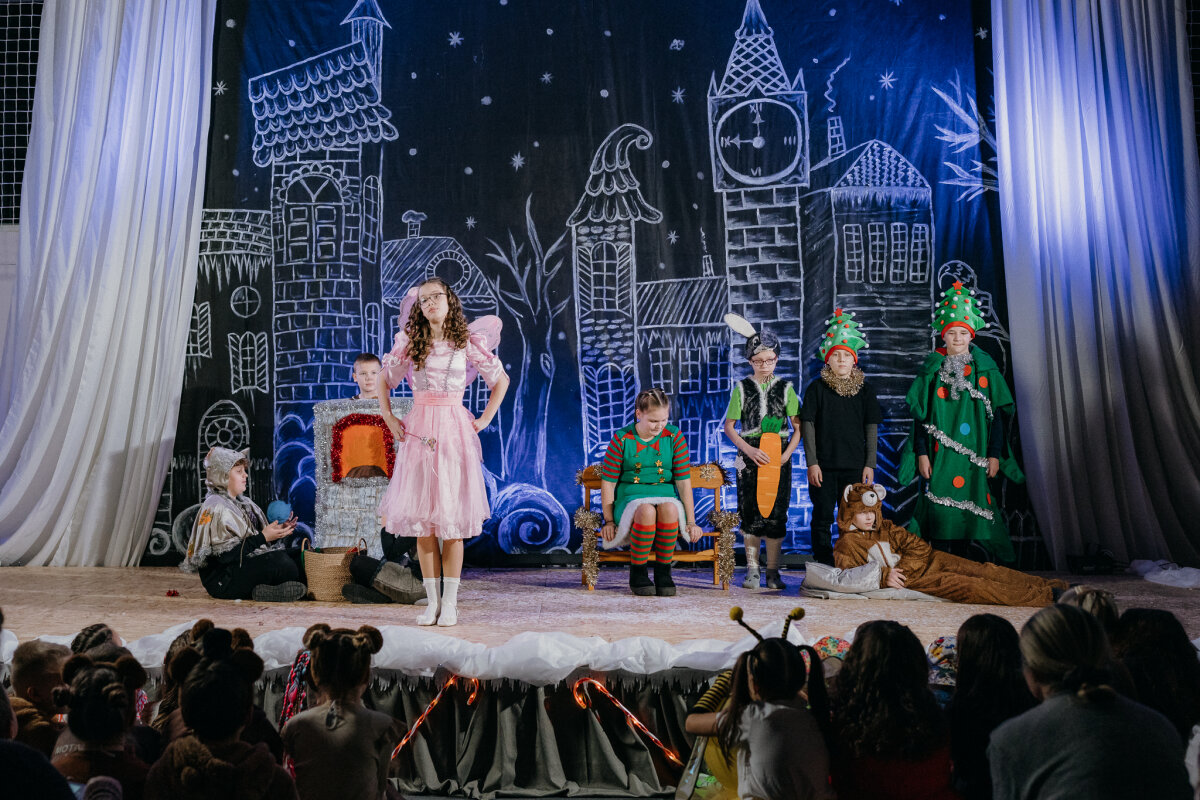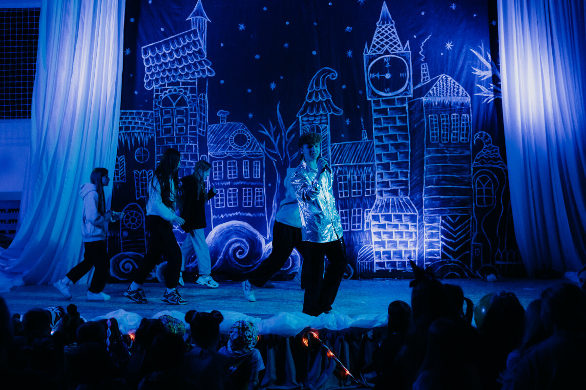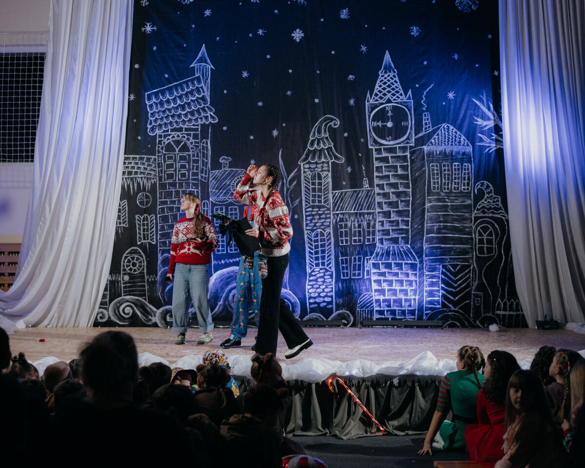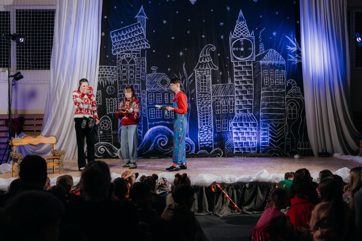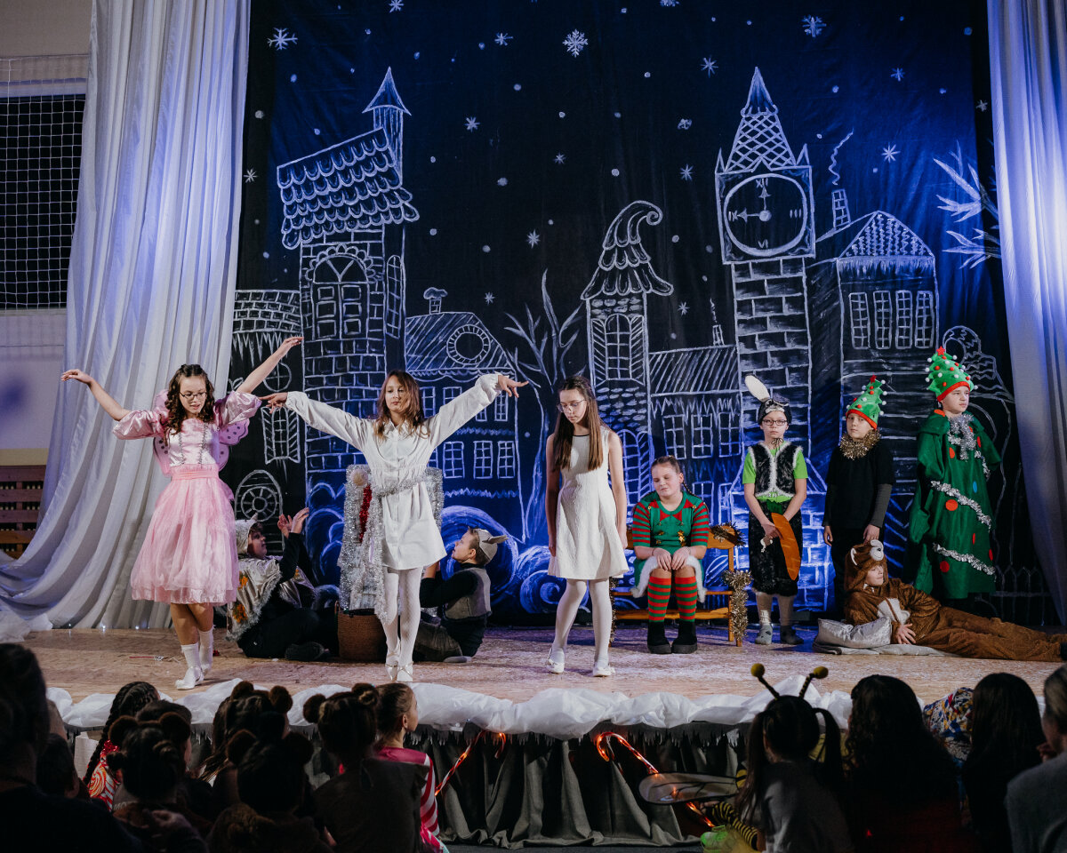 Scenoje gimė istorija apie tris draugus – Liucę, Dorotę ir Kajų, kurie paskutinėmis minutėmis iki Kalėdų leidžiasi ieškoti dingusios Kalėdų dvasios. Jų kelionė vedė per paslaptingas erdves, kuriose kiekviena klasė atskleidė vis kitą stebuklą. Kambarys virto mišku, šešėliai – baimėmis, o baimės – drąsa. Šviesa, muzika ir judesys scenoje kūrė ypatingą įtampą, leidusią žiūrovams ne tik stebėti, bet ir jausti.