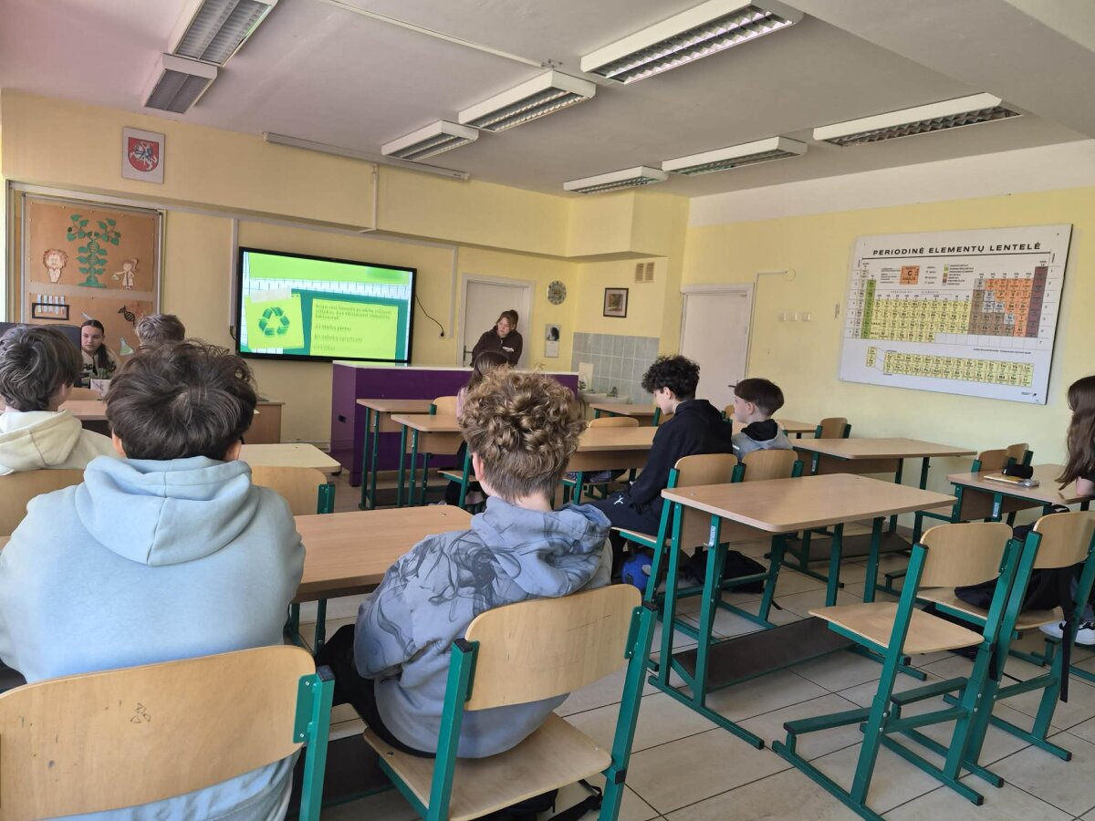 Kovo 18 dieną mokykloje buvo minima pasaulinė antrinių žaliavų perdirbimo ir rūšiavimo diena. Šia proga vyko viktorina, kurioje dalyvavo 7, 8 ir II klasių mokiniai. Jos metu mokiniai ne tik pasitikrino savo žinias, bet ir prisiminė, kodėl svarbu rūšiuoti atliekas bei kaip kiekvienas iš mūsų gali prisidėti prie aplinkos saugojimo. Diskusijų metu aptarėme antriniu žaliavų perdirbimo naudą, kalbėjome apie atsakingą vartojimą ir šios dienos reikšmę, skatinančią sąmoningumą bei tvarius įpročius. Viktorinos pabaigoje geriausiai pasirodę mokiniai buvo apdovanoti. Renginys buvo prasmingas, įtraukiantis ir priminė visiems, kad net ir maži kasdieniai pasirinkimai gali turėti didelę reikšmę mūsų aplinkai.