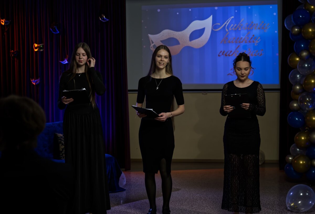 Vasario 27 dieną gimnazijos aktų salėje įvyko labiausiai abiturientų laukiama šventė – šimtadienis, šiemet virtęs įspūdingu „Auksinių kaukių vakaru“. Tai buvo vakaras, kuriame susipynė elegancija, paslaptis, spindesys ir jaudulys.