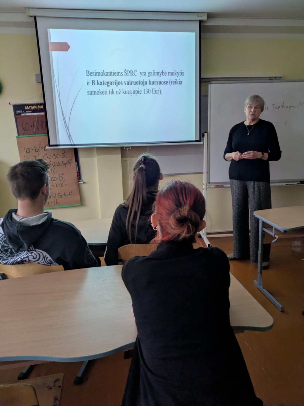 Gruodžio 9 dieną gimnazijoje IV klasės mokiniai susitiko su Švenčionių profesinio rengimo centro karjeros koordinatore Danute Ankėniene. Susitikimo metu profesinio rengimo centro atstovė pristatė mokyklos veiklą, papasakojo apie ugdymo programas bei siūlomas profesijas, apie stojimo sąlygas ir būdus, stipendijas ir paramą būsimiems mokiniams, supažindino su karjeros planavimo galimybėmis. Sužinojome apie Švenčionių profesinio rengimo centre vykstančias šventes ir vykdomus projektus. Koordinatorė pasidalino įspūdžiais ir įamžintomis akimirkomis iš užsienio šalių, kuriose profesinio rengimo centro mokiniai mokėsi ir dirbo pagal ,,Erasmus+” projektą. Buvo įdomu, nes praplėtėme savo pažinimo kompetenciją – labiau pažinome mokymosi galimybes arčiausiai mūsų esančioje profesinėje mokykloje, praplėtėme savo ugdymosi karjerai kompetencijas, kurios padės priimti sprendimus projektuojant savo ateitį ir renkantis tolimesnį savo mokymosi kelią.